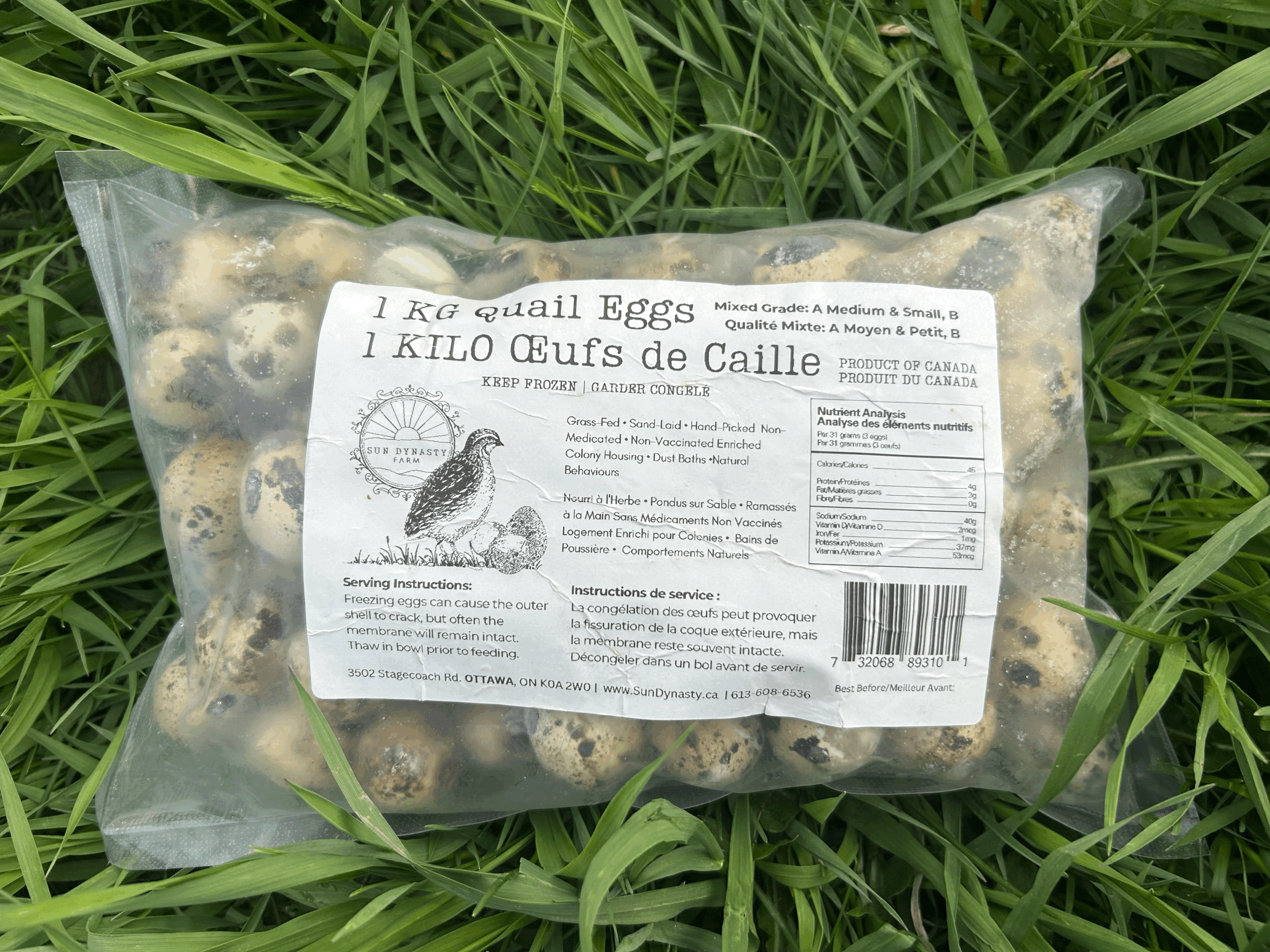 All Pasture-Raised Whole Chicken $6.25 18-Pack Quail Eggs $6.00 18 Pack Jumbo Quail Eggs $7.50 18 Pack Organic Feed Quail Eggs $9.00 1KG Frozen Quail Eggs $20.00 5KG Frozen Eggs $70.00 Pasture-Raised Chicken Wings $6.75
